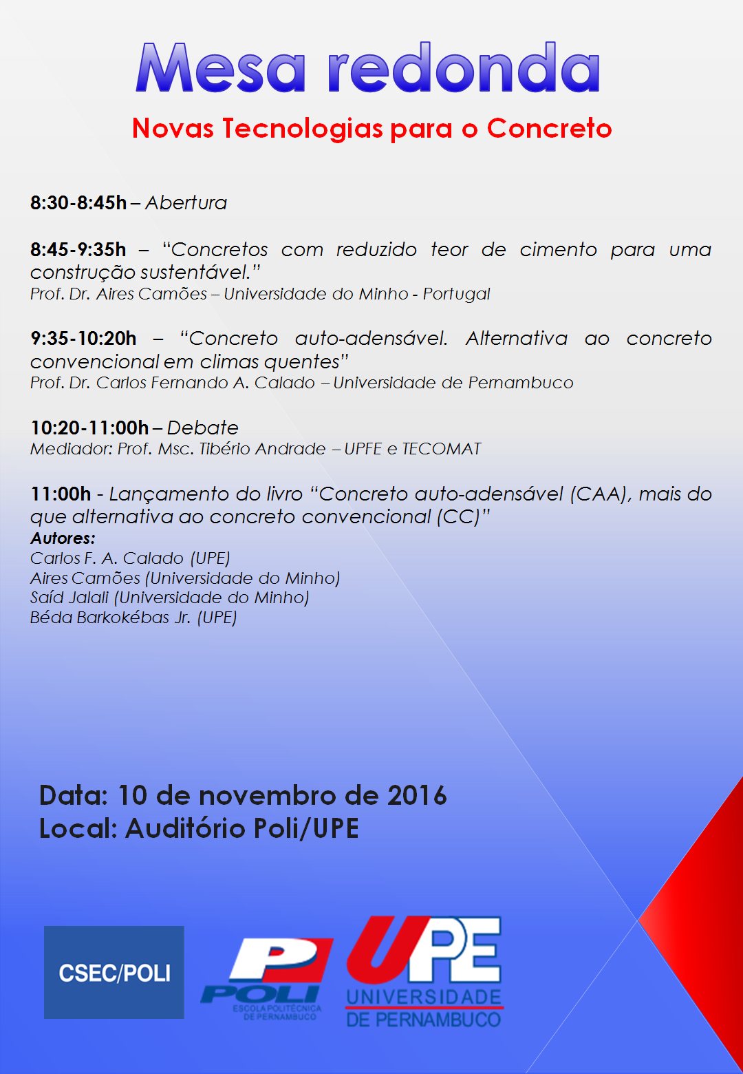 Mesa redonda – Novas Tecnologias para o Concreto 4 de novembro de 2016 Eventos Veja as fotos do evento civil, concreto, mesa redonda, palestra, tecnologia